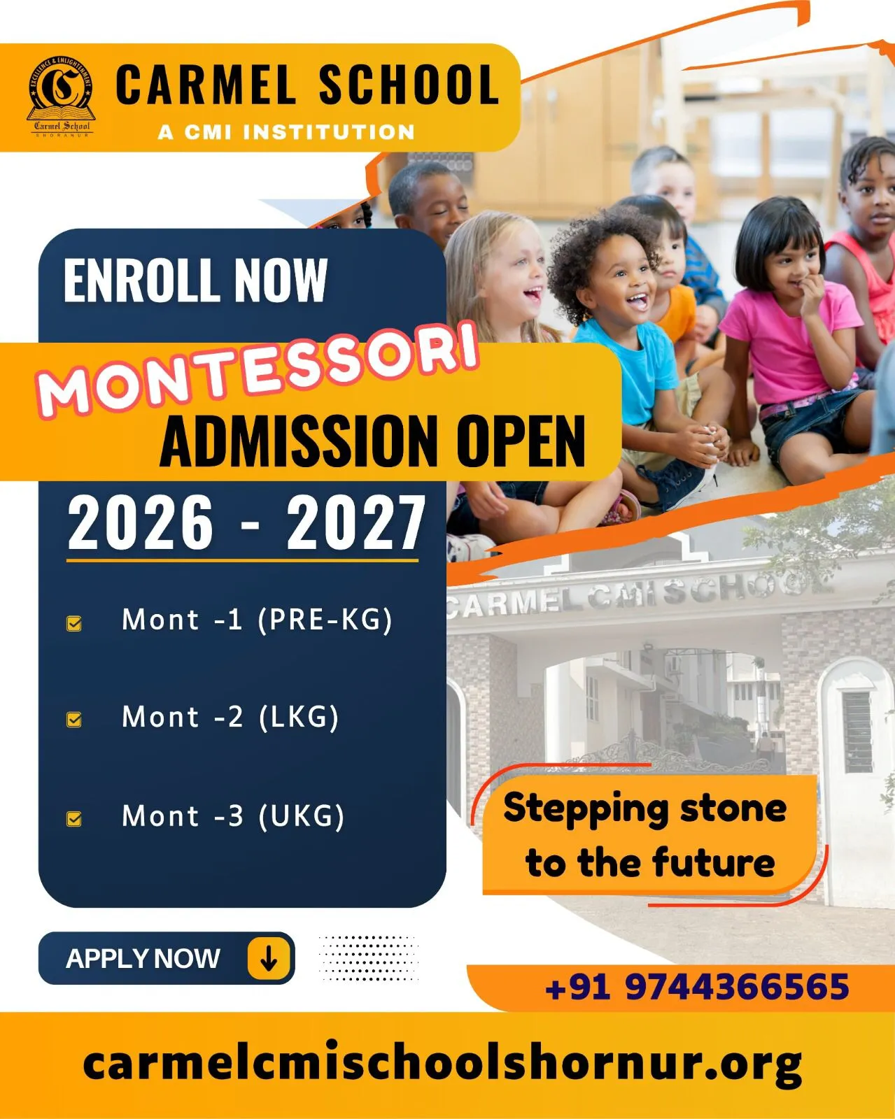As the Principal of Carmel CMI school, Shoranur, it is with an immense sense of satisfaction and pride, that I take the pleasure of announcing, the successful completion of another year of our chairman's visionary school, as school with a mission, purpose and moral values which can enrich the tender minds of young children and guide them on to a path of global reach.